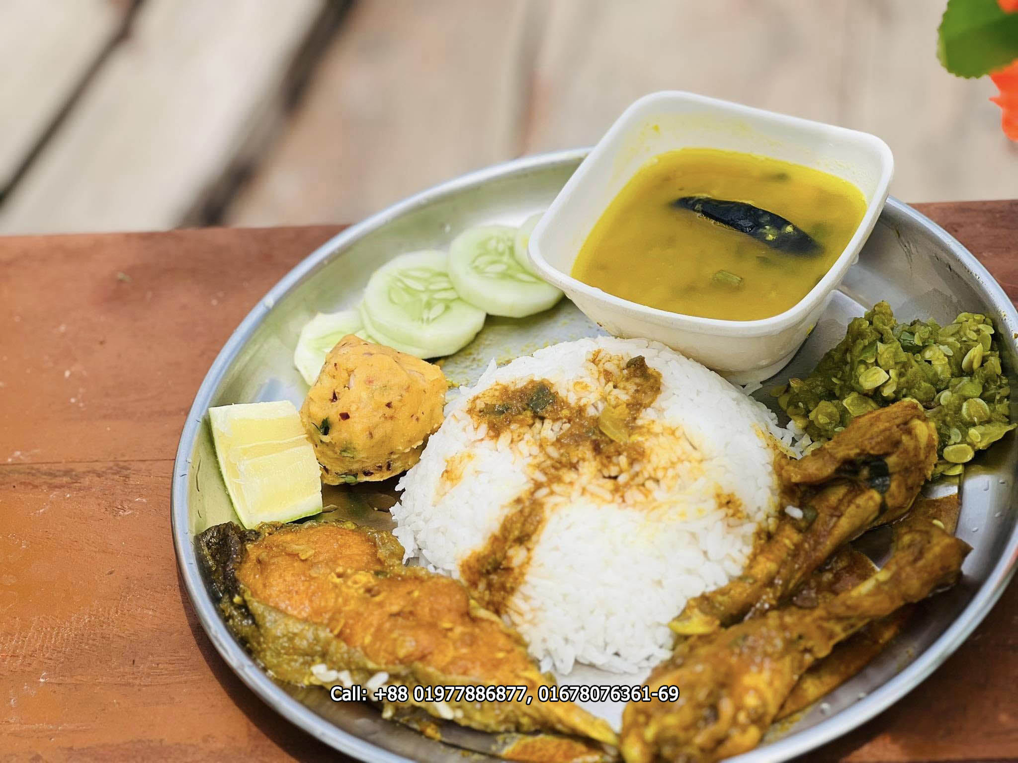Lunch (2:00 PM) – Plain Rice, Bhorta, Local Duck Bhuna, Local Fish Chorchori, Ghono Dal, Salad & Water