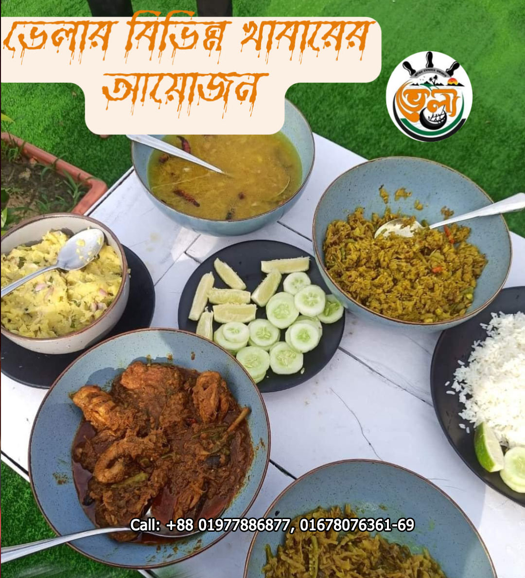 - Lunch (2:00 PM) – Plain Rice, Bhorta, Local Duck Bhuna, Local Fish Chorchori, Ghono Dal, Salad & Water