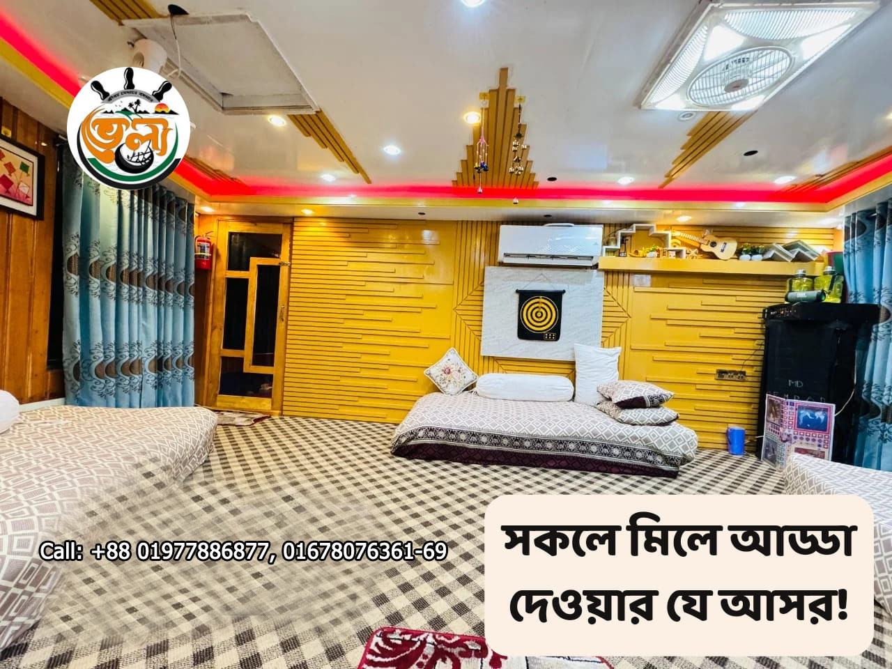 ভেলায় রয়েছে ৬টি লাক্সারিয়াস কেবিন, প্রতিটি কেবিনেই রয়েছে এটাচড বাথরুম এবং ফ্যামিলি ফ্রেন্ডলি লাউঞ্জ, যা আপনার ভ্রমণকে করবে আরও আরামদায়ক এবং উপভোগ্য।