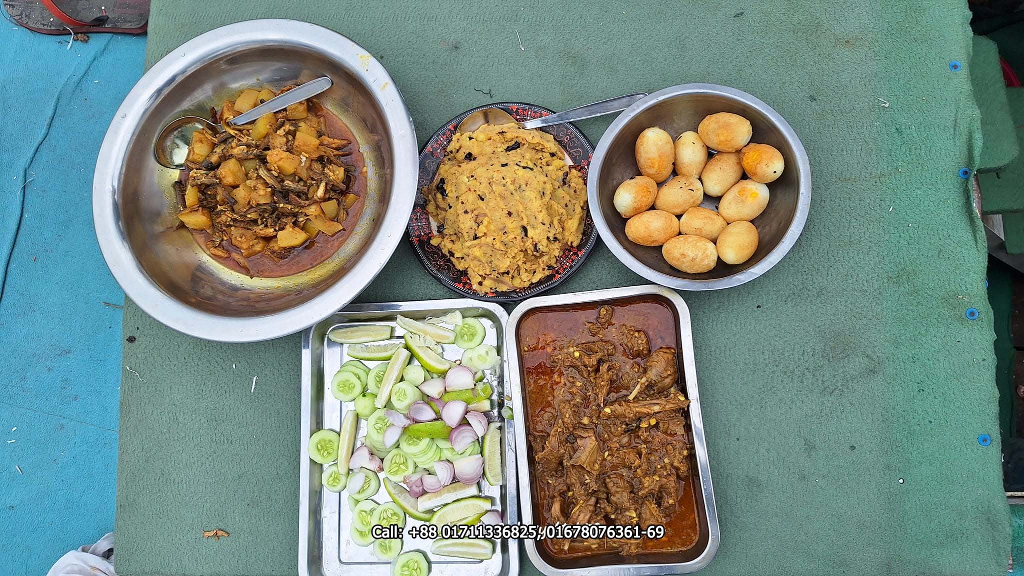 Lunch (2:00 PM) – Plain Rice, Bhorta, Local Duck Bhuna, Local Fish Chorchori, Ghono Dal, Salad & Water