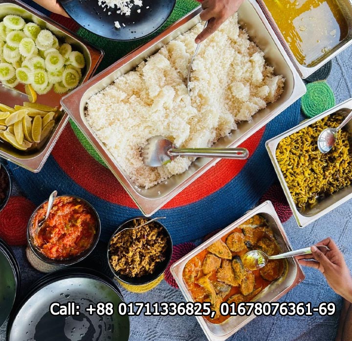 Lunch (2:00 PM) – Plain Rice, Bhorta, Local Duck Bhuna, Local Fish Chorchori, Ghono Dal, Salad & Water