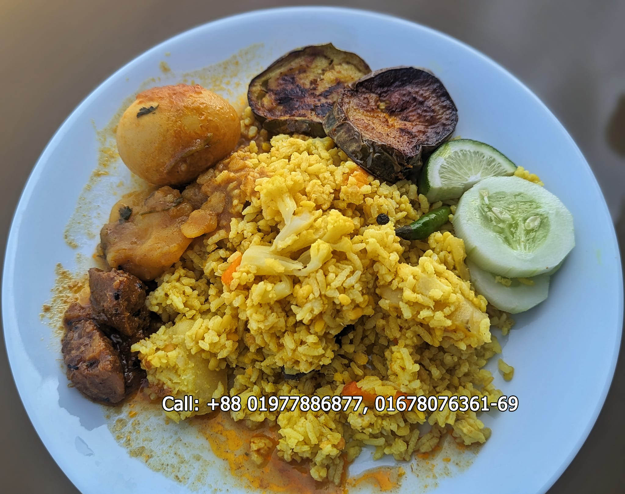 Breakfast (8:00 AM) – Chicken Bhuna Khichuri, Fried Egg, Peyaj & Kacha Morich Bhorta, Salad, Water & Tea