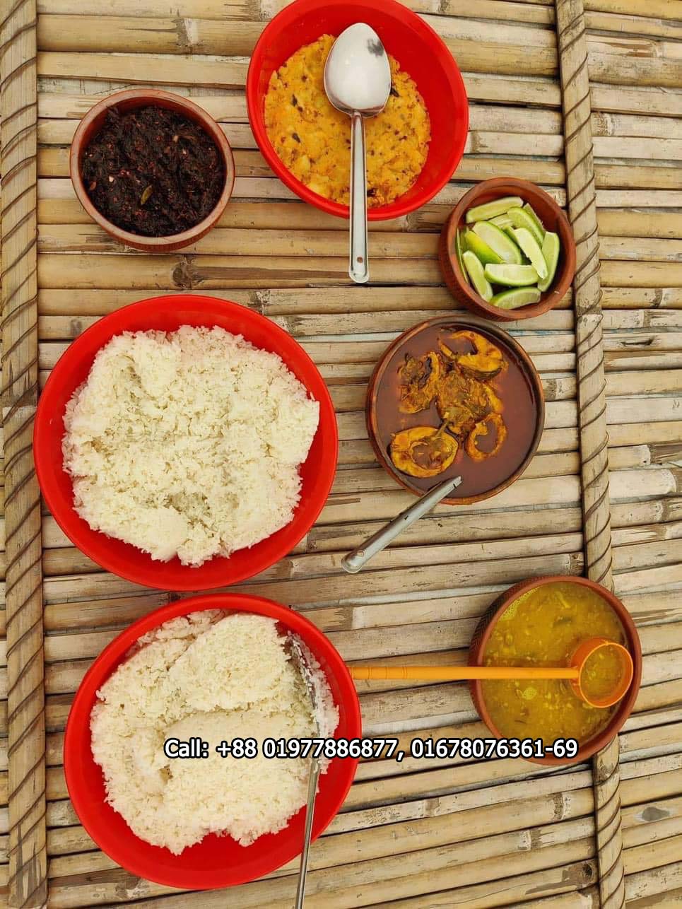 - Lunch (2:00 PM) – Plain Rice, Bhorta, Local Duck Bhuna, Local Fish Chorchori, Ghono Dal, Salad & Water