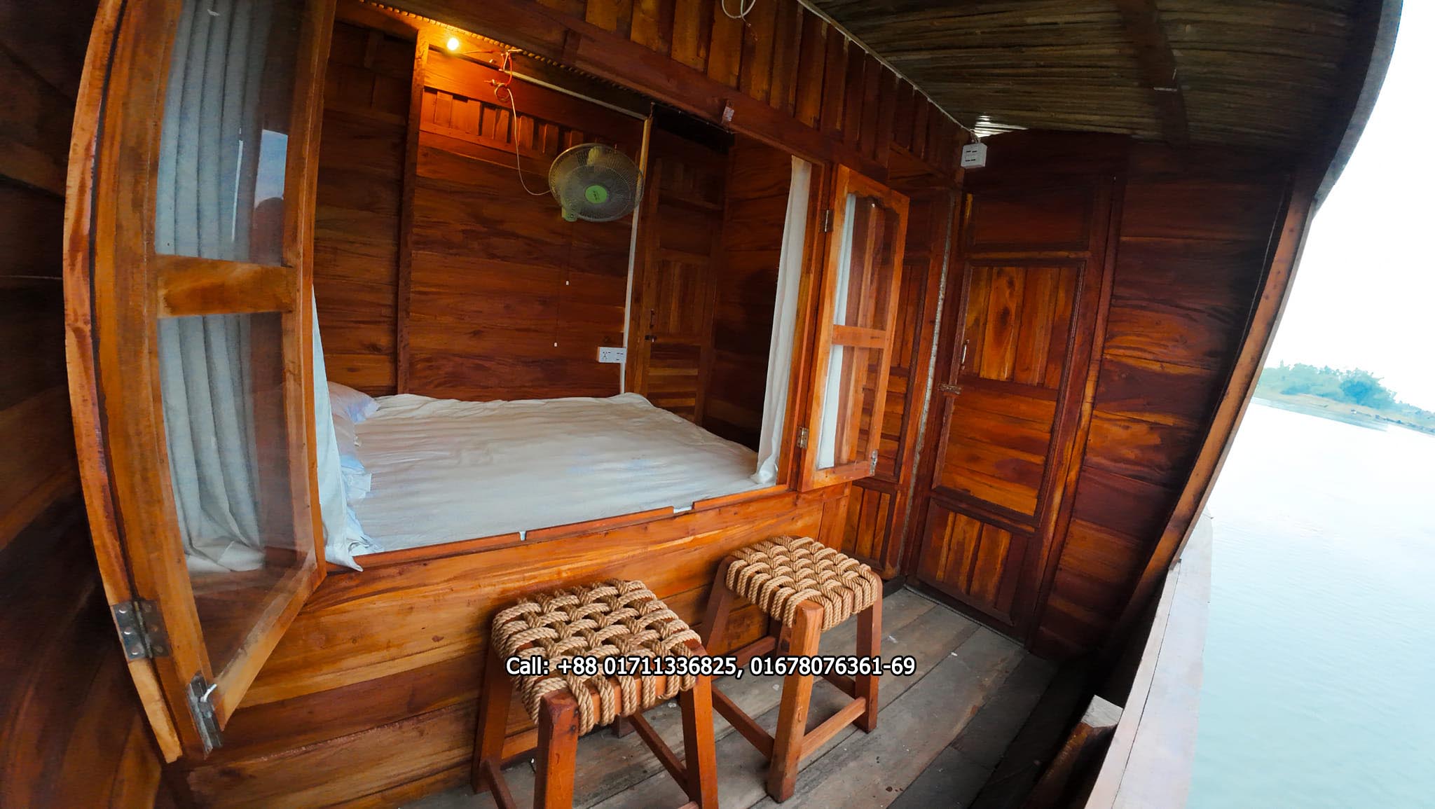 কাঠের তৈরি নান্দনিক এই বোটে পাচ্ছেন ৬ টি কেবিন, ৩ টি এ্যাটাচ বাথরুম, ৩ টি বারান্দা, কমন ওয়াশরুম সহ আর্কষণীয় লবি,সিড়ি ও ছাদে ওঠার সুব্যবস্থা। এছাড়াও থাকছে বিভিন্ন সুযোগ সুবিধা :