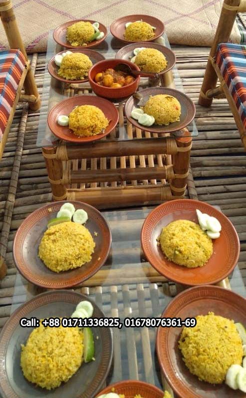 Lunch (2:00 PM) – Plain Rice, Bhorta, Local Duck Bhuna, Local Fish Chorchori, Ghono Dal, Salad & Water