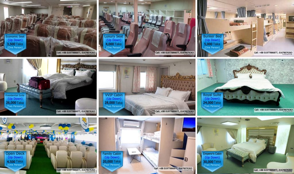 | VVIP Cabin (Deck A – 6th Floor) | 28,000 | 14,500 |