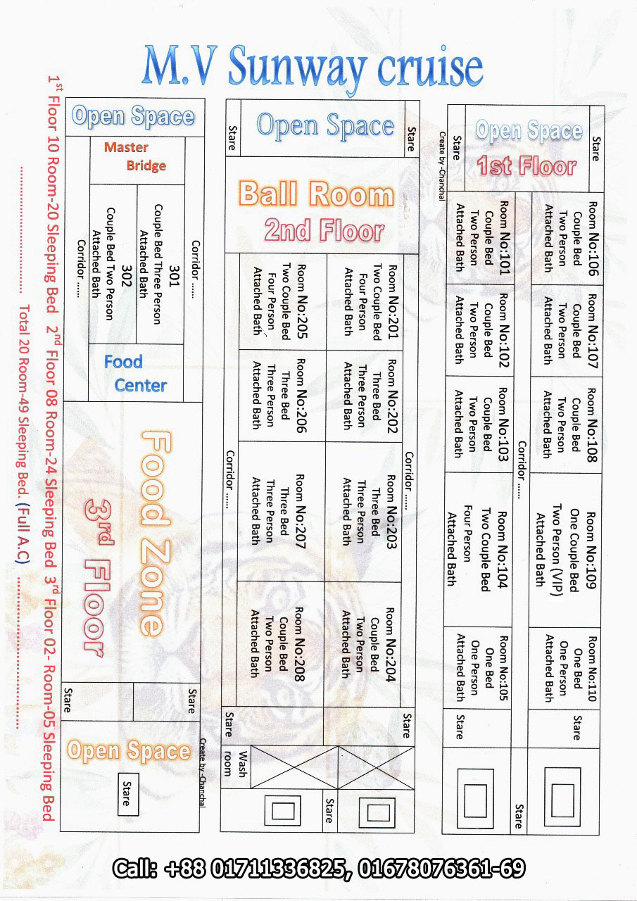 “SunWay” is a hundred and twenty feet long, and twenty three feet wide cute lady constructed of brand new imported steel capable to swim in the rivers for a continuous five days while carrying only forty eight of her lovers inside her cabins. Her brand new imported twin engine is capable of maintaining a speed of about 15kt, which are completely monitored and controlled from her Bridge.
