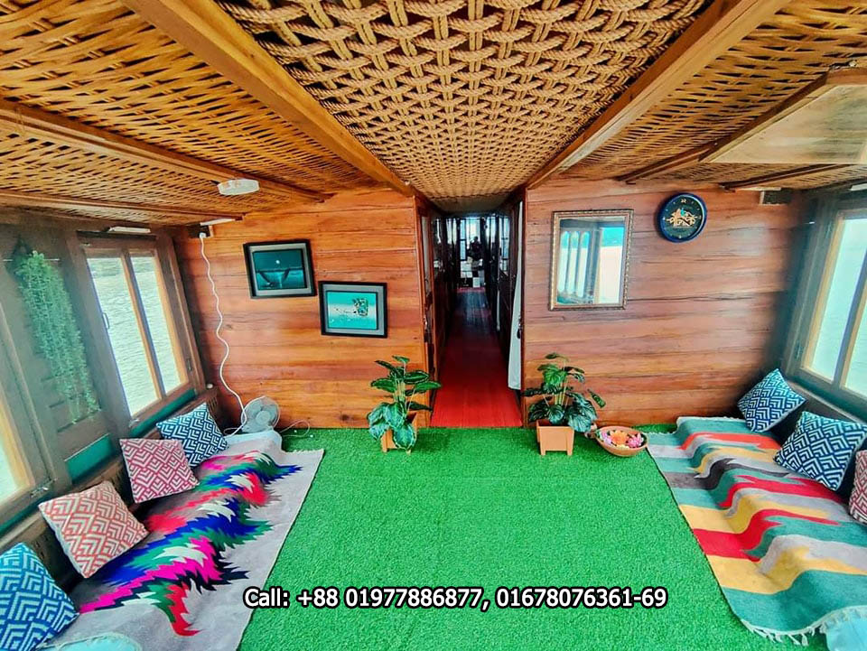 - ❑সুবিশাল ওপেন লাউঞ্জ। যেখানে শুয়ে বসে আড্ডা দিতে দিতে হাওর উপভোগ করতে পারবেন।