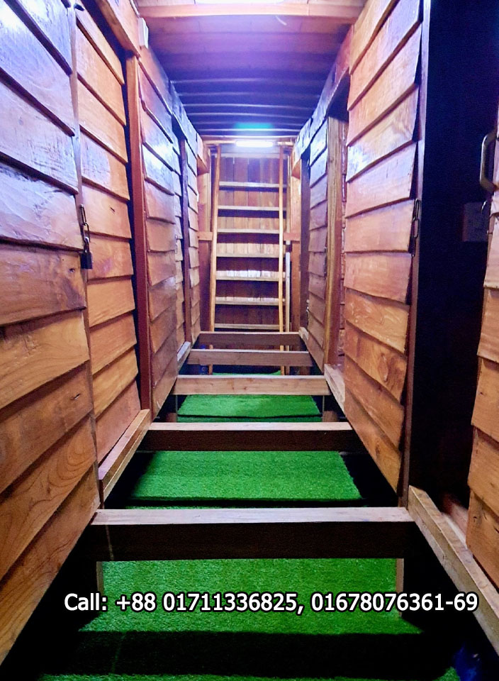 *কাঠের নৌকা (দৈর্ঘ্যে ৭৫ ফুট, প্রস্থে পেটের কাছে ১৫ ফুট, উচ্চতা ৬-৭.৫ ফুট পর্যন্ত)