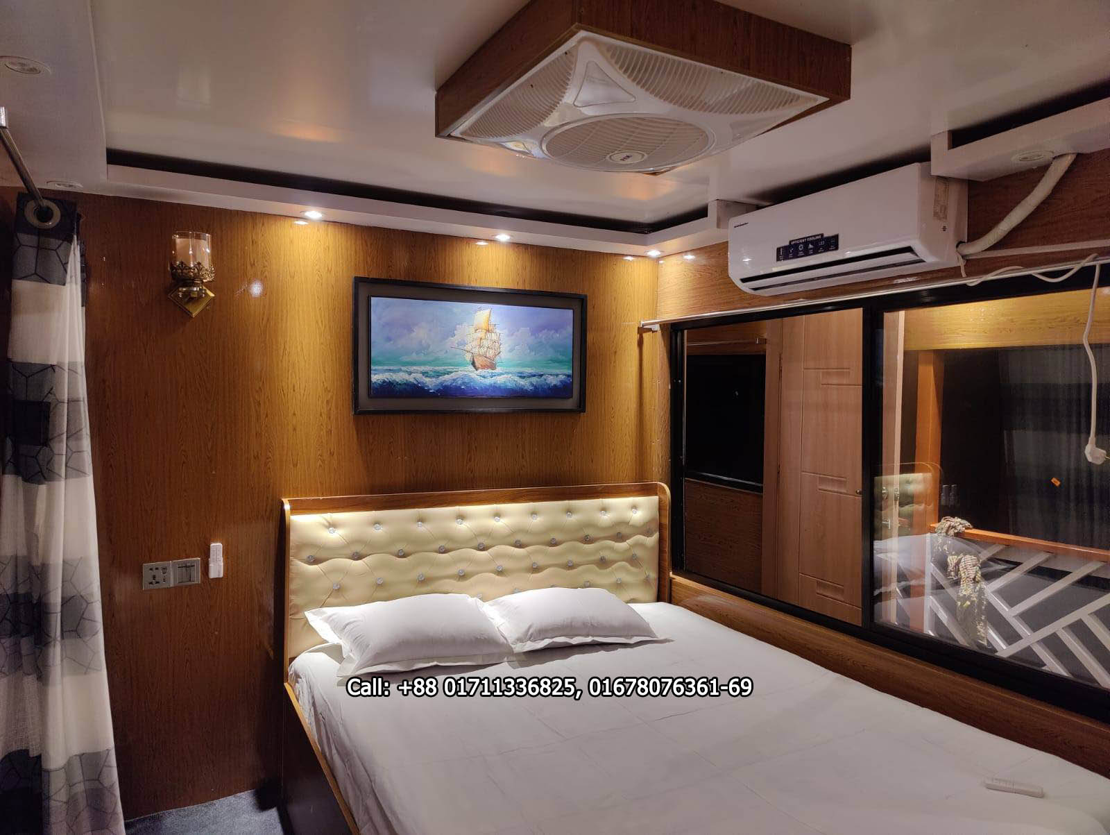 প্রতি কেবিনে রয়েছে প্রশস্ত বেড, লাইট, ফ্যান, ড্রেসিং টেবিল, লকার এবং চার্জিং পয়েন্ট।