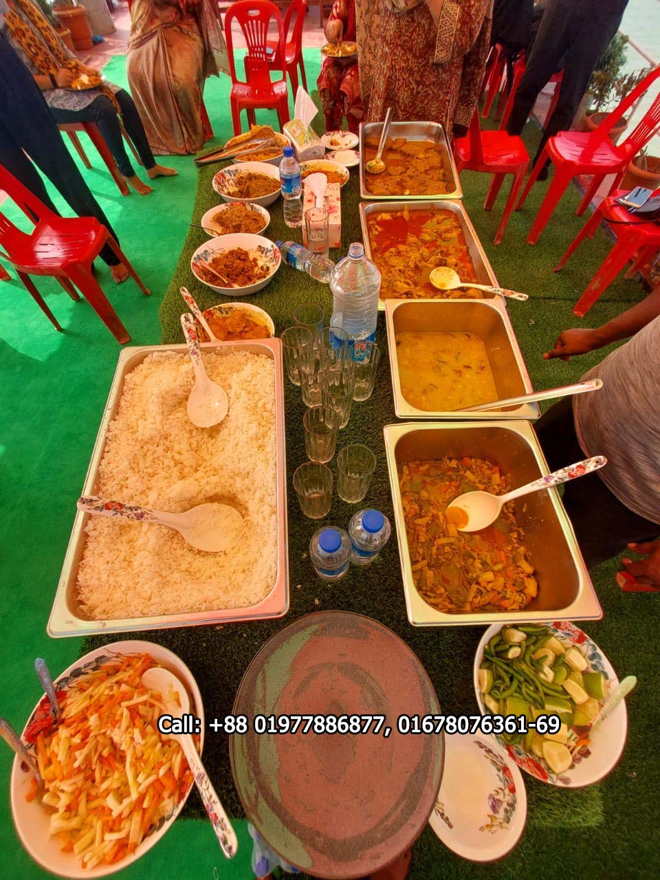 - Dinner (9:30 pm) – Plain Polao, Chicken Bhuna/Rezala, Fried Fish, Murighonto, Salad, Drinks & Water