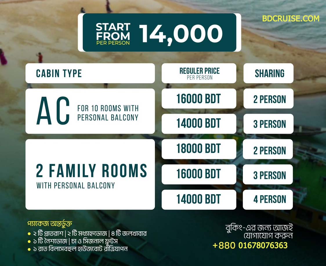 ✅ 01 কেবিনে 04 জন শেয়ার ফ্যামিলি : জনপ্রতি 14,000 টাকা ( টোটাল: 56,000 টাকা)