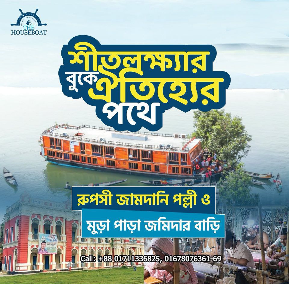 শীতলক্ষ্যার স্বপ্নময় হাউজবোট ভ্রমণ ও হারানো ঐতিহ্যের সন্ধানে” ছুটির দিনে নদীর শান্ত জলরাশির বুকে কাটান প্রিয়জনদের সঙ্গে ভালোবাসা, বন্ধুত্ব এবং নির্ভেজাল আনন্দের মুহূর্ত।