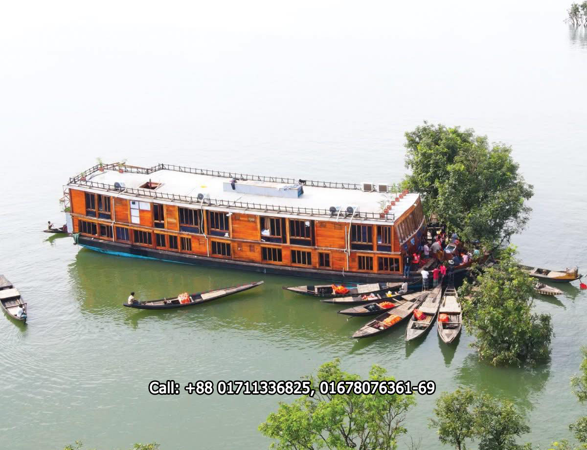 - ১০০ ফিট লম্বা এবং ২২ ফিট চওড়া দেশের সবচেয়ে বড় বিলাসবহুল হাউজবোট—আরামদায়ক ভ্রমণের জন্য সম্পূর্ণ প্রস্তুত